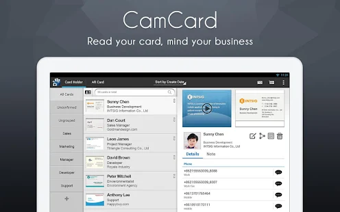 * Easily manage cards on the go: With CamCard, you can easily search, sort, group, merge your cards on both smartphone and website http://www.camcard.com
