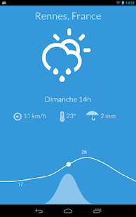 Check out the evolution of the weather along the day by sliding your finger on the temperature graph! Wind speed and precipitation are also updated.