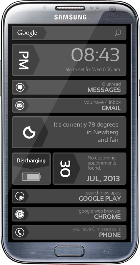 *You must have UCCW installed on your phone to use this theme. Download UCCW for free from the Play Store..
