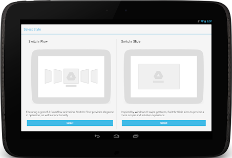 Overview: Switchr is a well designed, well polished, feature packed and simple, yet practical application that allows switching between running tasks with impeccable elegance and flawless perfection.Switchr is a lot like Alt-Tab, except prettier, more fluid, and customizable, with a few more features sprinkled here and there. Using Switchr, you can switch between running apps with style, two styles in fact (you choose), each with its own advantages and gesture based actions such as closing apps, or shortcut to the home screen. It's a must-try.