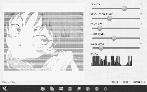This app helps you create alternative art, typography, email messages, forum, code, pictures and more. Take your favorite photos and create new and exciting text and photo art.