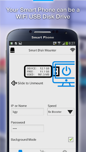 Overview: Smart Disk Mounter is the app which the smart phone can be used as Wireless USB disk at the computer. Smart mobile phones can be used as a wireless hard drive in PC Windows and Mac OS-X.