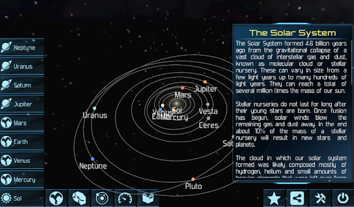 Interesting facts about each of the places you visit in the solar system, and the spacecraft you see are available at the touch of a button.